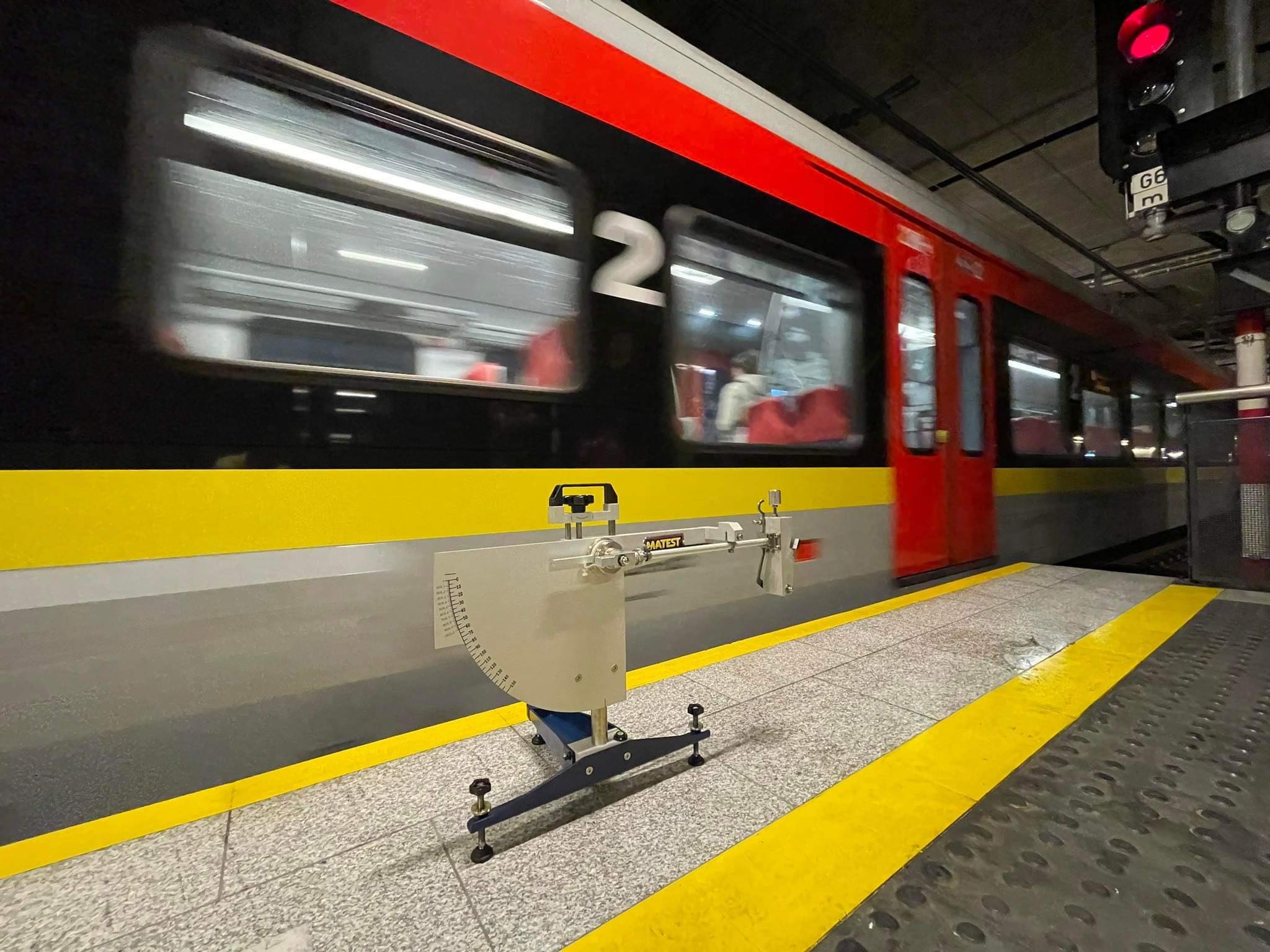 Die Pendeltest-Methode PTV, die in Übereinstimmung mit den geltenden Normen durchgeführt wird, simuliert den Kontakt eines Schuhabsatzes mit der Oberfläche und misst den Reibungskoeffizienten. Die Ergebnisse dieser Tests sind entscheidend für die Bewertung des Sicherheitsstandards eines Bahnsteiges und ermöglichen es, korrektive Maßnahmen zu ergreifen, falls die Rutschfestigkeit nicht den erforderlichen Standards entspricht.